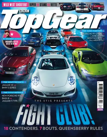 In this issue: TopGear Fight Club! | 911 vs i8 vs F-Type at Dunsfold | 5-Series vs XF | Muscle car shootout: Stang vs Vette vs Viper | Pagani vs Koenigsegg | Lagonda: old vs new | Astra vs Focus vs Golf | SV vs 675 vs GT3 RS | and much more….