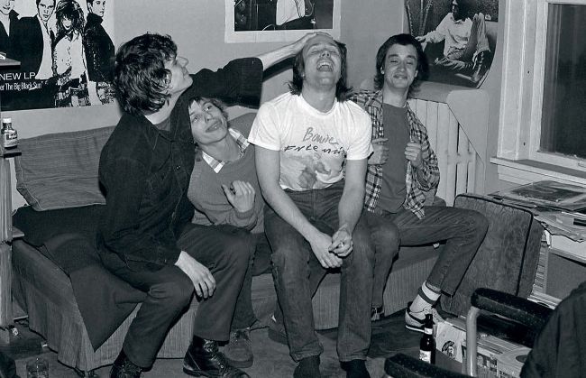 Peter Jesperson (in Bowie T-shirt)with Paul Westerberg, Tommy Stinson and Chris Mars