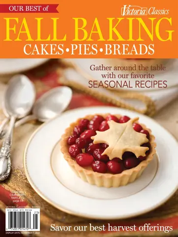 When roadside market stands brim with baskets of crisp, red apples and piles of pumpkins mingle with sheaves of golden wheat, we know that autumn has arrived, bringing with it all the signature flavors of the season. Fall Baking 2022 gathers our favorite recipes from the past five years of this perennially popular Victoria Classic issue, presenting the bounty in one taste-tempting edition certain to inspire your culinary endeavors. Whether you’re looking for the perfect bread to accompany a hearty soup or round out a meal, pastries that feature the luscious fruits of fall, or sweet confections suitable for dessert, afternoon tea, or any time at all, you’ll find yourself turning again and again to this collection of delectable dishes. We’ve thoughtfully chosen each flavor-filled recipe, certain to make indelibly delicious memories as you gather around the harvest table with those you hold dear.
