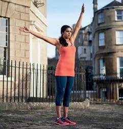 Divide your run into three sections: warm up, the run itself, and cool down – each of these is equally important. Your warm up should include a brisk walk and the following dynamic (moving) stretches: