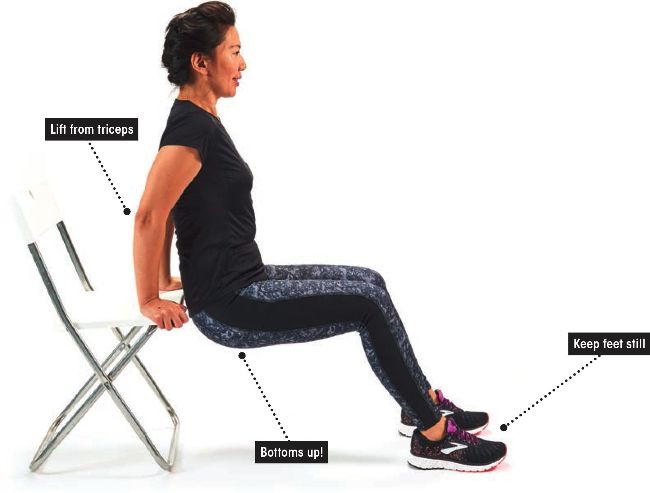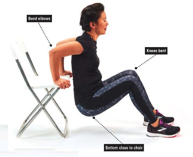 Chair dips are a great exercise to strengthen the back of your arms and will help improve your running technique. They’re easy to do and you can change the intensity to suit your current fitness level.