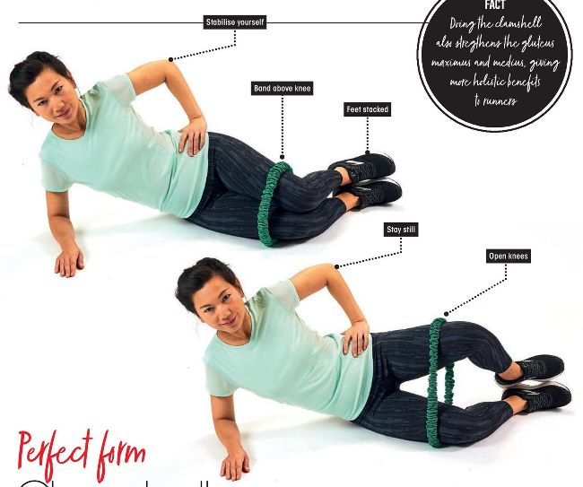 Doing the clamshell also stregthens the gluteus maximus and medius, giving more holistic benefits to runners