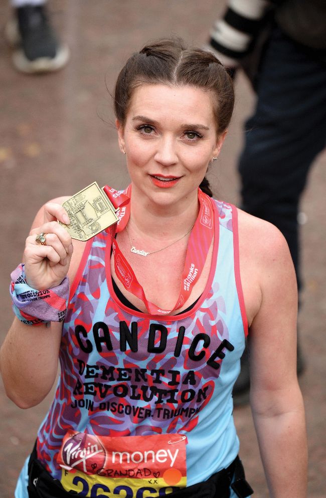 Candice Brown, 34, won the seventh series of Th e Great British Bake Off and also appeared on 2018’s Dancing on Ice. She ran this year’s Virgin Money London Marathon in aid of Dementia Revolution