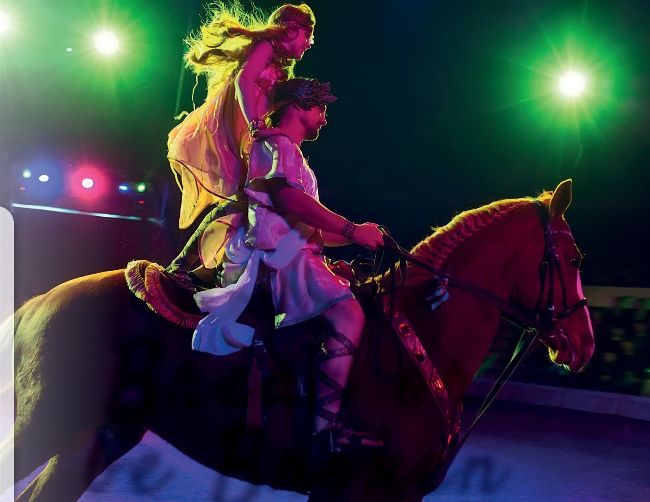 relishes lingering looks during these post-show photographs in his glistening costume. Women’s eyes combing the contours of his sparkling muscles, hands loitering on his glittering waist. Oskar sometimes holds me in our trailer and at points in our act, but he doesn’t touch me during these meet-andgreets. Audience remnants drift away across the muddy field.