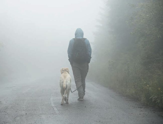 Foggy conditions make you less visible, so invest in some high-vis gear for you and your dog.