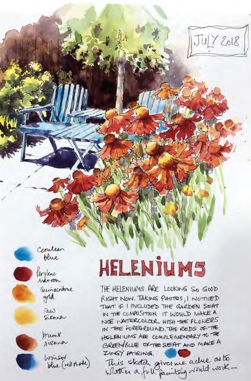 So, I thought, why not put my paintings together in a book where they could later be looked at by simply turning the pages? Together they would form a record of my life and, notably, my garden. I knew that, next to painting, flower gardening and recording nature in its many forms were what I most loved to do so why not combine the two in a visual artist’s journal?
