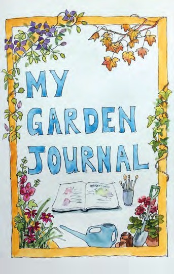 , pen and wash, A4. On this title page I wanted to include elements of my garden, such as favourite plants and gardening equipment. I made an outline with a fine liner then added watercolour. It makes a colourful introduction to the journal and was fun to do.