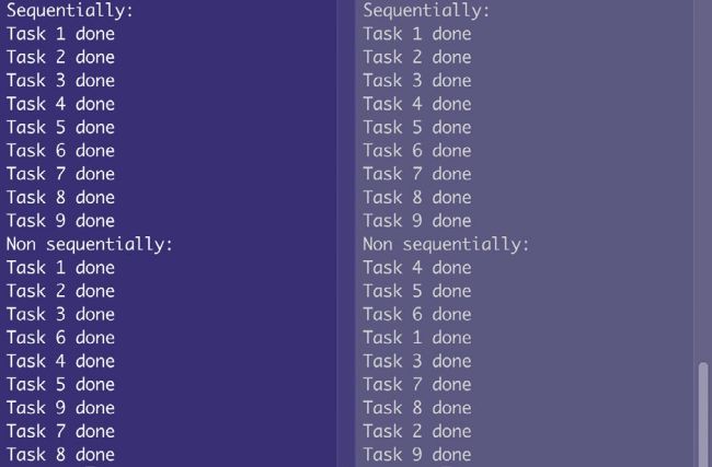 order.py that illustrates sequential and asynchronous execution of functions and coroutines, respectively. Coroutines are executed in a random order.