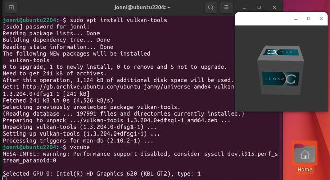 We’ll see later how you can get 3D acceleration working in your VMs, like the Vulkan cube demo.