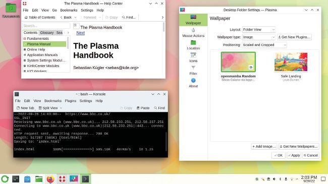 KDE Plasma desktops are always pretty to look at. In the background, you can see the single Openmamba specific wallpaper. Nice, isn’t it?