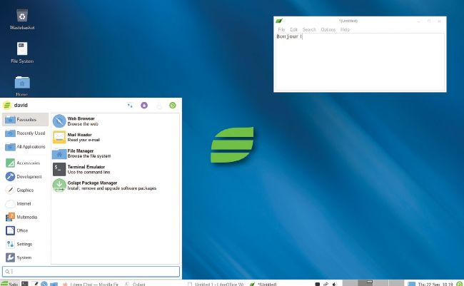 Lovely wallpapers and unobtrusive stylised leaf branding on an otherwise stock Xfce desktop is an excellent choice in our opinion.
