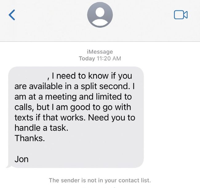 A real-world targeted phishing attempt; the ‘boss’ is often posed asking a subordinate to buy gift vouchers.