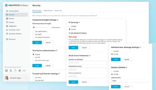 Security settings in OnlyOffice DocSpace.