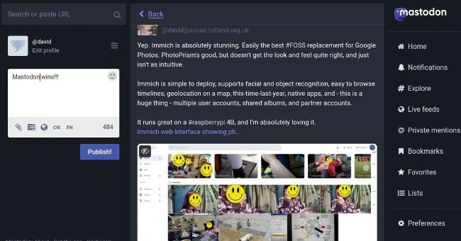 While Akkoma is this writer’s own personal favourite, we can’t recommend it to everyone, and it’s best used as a single-user instance or with up to a few dozen local users. The interface, although switchable, is best suited to informal conversations and captioned images.