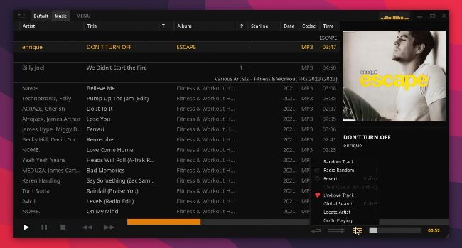 Tauon has interesting theming options. Head to Menu > Settings > Themes to switch to a different colour theme. The app can also use album art as a background.
