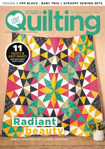 Discover how to design a stunning FPP block and enjoy our charming Baby Trio & Scrappy Sewing Sets. With 11 quick and easy makes and the launch of a new BOM series, this issue is bursting with inspiration for every quilter.