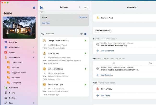 Controller For HomeKit is a popular app for Mac, iPhone and iPad, and the free version provides a more straightforward interface for creating automations and scenes. There’s also a Pro version with advanced features, such as the ability to respond to notifications from the Home app, which costs £24.99 per year (with one week free trial) or £54.99 for a lifetime licence.