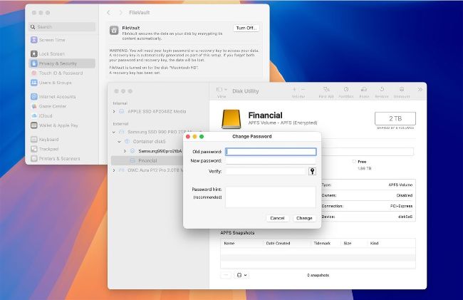 FileVault encryption protects only the Data volume. Other APFS encrypted volumes are managed using Disk Utility.