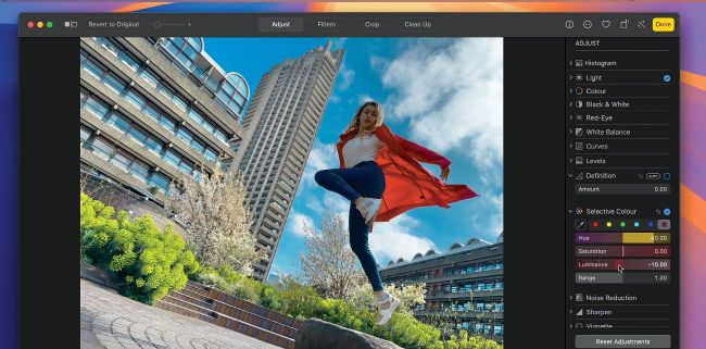 By and large, the camera on your iPhone does a fine job of capturing a subject’s true colours. If there are problems with colour in a shot (such as green and magenta tints or blue and orange colour casts), then these are easily fixed using the sliders in Photos’ Colour and White Balance panels. However, Photos also enables you to perform more creative colour adjustments to catch the eye on social media feeds. Thanks to macOS Photos’ Selective Colour panel, you can target specific colours in a shot and change their hue, saturation and luminance (brightness) values. This extra level of control enables you to alter the colour of a subject’s clothes, darken the sky to make clouds pop out more and even create a ‘spot colour’ effect where a single colour draws the eye to a particular subject in a black and white conversion. We’ll also demonstrate how Photoshop’s powerful masking tools can give you even more control over your selective colour adjustments.