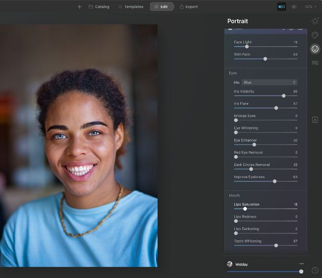Each template has an amount slider to apply as much or as little as you like