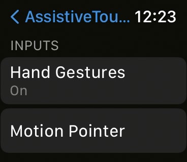 > Issues with touching the screen or pressing the buttons? With AssistiveTouch (Settings > Accessibility), you can get your watch to launch menus, control on-screen pointers and answer calls by monitoring your hand gestures. The gestures can press and turn the Digital Crown, swipe between screens, activate Siri and access key features.