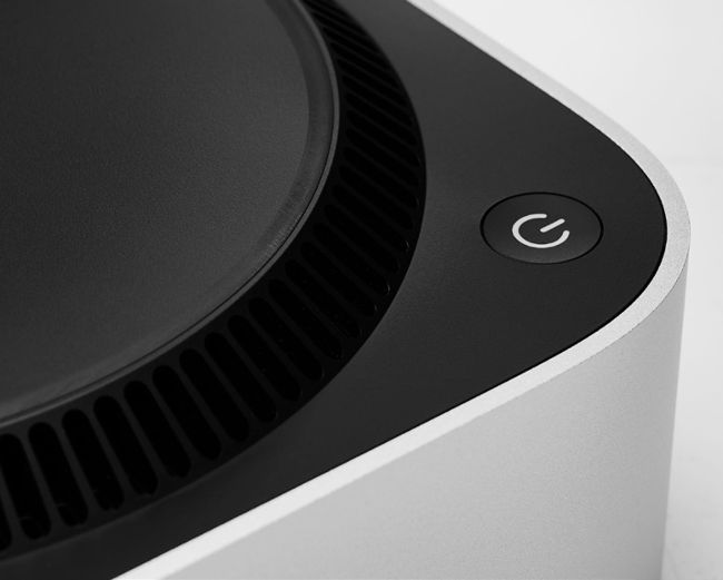The Power button is oddly located on the bottom of the Mac mini, in the back-left corner, but it’s not a major problem.