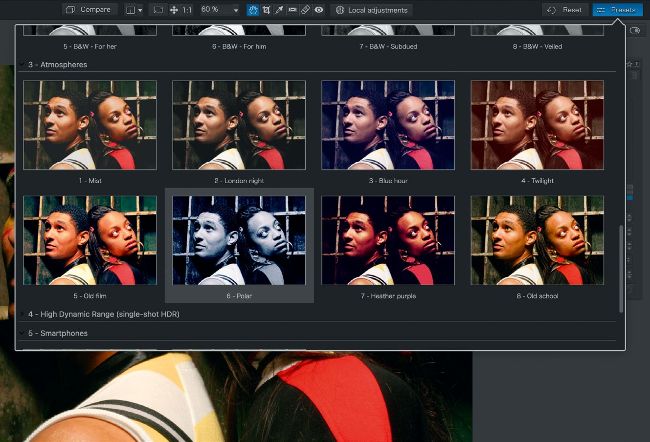To quickly adjust your Raw or JPEG files, browse though a themed collection of one-click presets.