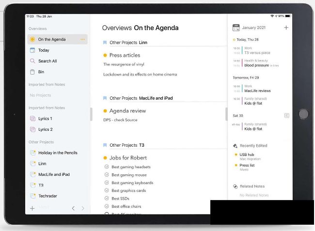 his app combines notes, calendars, and reminders. Agenda notes can contain pretty much anything, and you can organise notes by category, project, dates or tags.