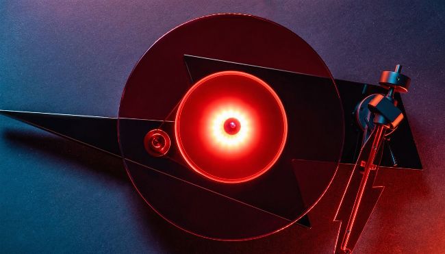 > For those about to rock, we salute you… especially if you’re spinning some tunes on this particular deck.The stylish Pro-Ject AC/DC turntable features an MDF plinth fashioned in the shape of the Australian band’s iconic lightning symbol, a matching red translucent tonearm and a circular glass platter with acrylic sub-platter, lit from below by an if-you-want blood red LED and equipped with a matching Ortofon 2M Red MM cartridge.