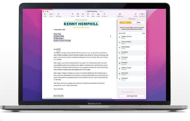The ability to merge contact details with documents has been missing from Pages for almost a decade. But now, the ability to send the same letter to lots of different people without having to create a new document manually and copy and paste into each one is back in Pages 12.1.