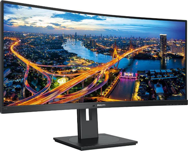 <£539> FROM Philips, philips.co.uk 34in 21:9 curved LED-backlit VA (Vertical Alignment) LCD, 3440x1440 WQHD resolution, 5ms, 1x DisplayPort 1.2, 1x HDMI 2.0, 1x USB-C (3.2 Gen 2) with power delivery, 4x port USB 3.2 hub, 1x USB-B