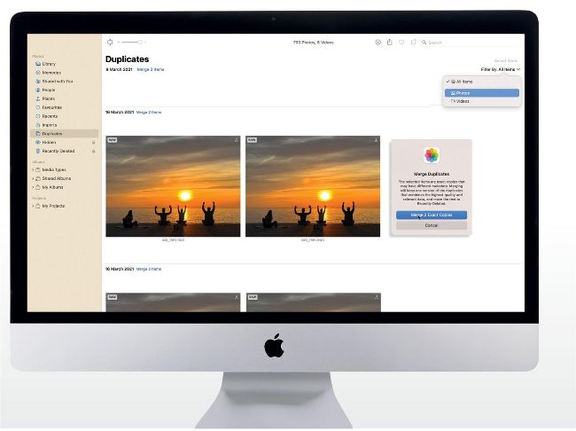 Discover and sort duplicate clips and stills for a cleaner Photos library
