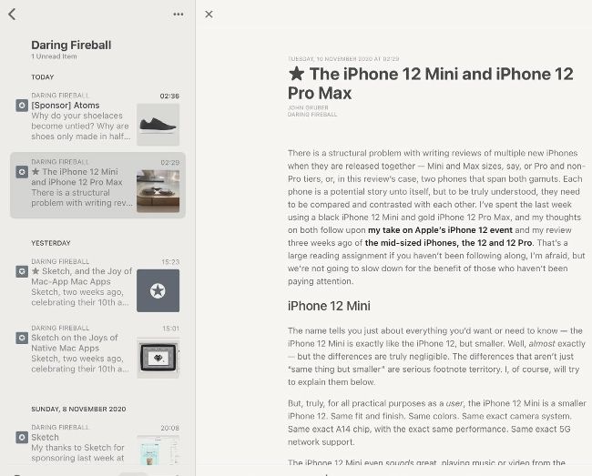 Reeder is one of the most popular RSS readers for iOS/ iPadOS (and Mac), and version 5 has some useful new features. As it’s a new app rather than an upgrade, it’s a flat $4.99 purchase.