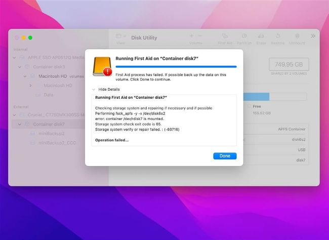 This is an annoying problem which thankfully seems to be less of an issue with more recent versions of macOS. In Disk Utility the answer is to try again, several times if necessary, and it should eventually work. Double–check the volume that you’re trying to assess: if it’s one of the current startup volume group, such as the Data volume, you’re better off doing this in Recovery mode, although the error can occur even there.