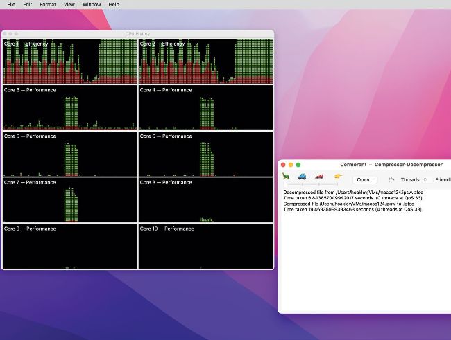 Apps normally run time–consuming tasks in parallel threads to avoid locking the app up with a spinning beachball. When those threads are created, the code should assign them a priority, known as Quality of Service (QoS), a setting of great importance when running on M–series chips.
