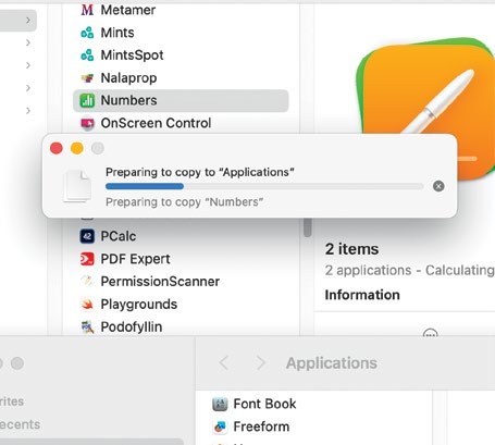 CAN I RUN PAGES AND NUMBERS IN A VM ON MY M2 MAC? Yes, although you’ll need to be careful how you copy them to ensure they run successfully. Before doing so, bring both up to date, and run them on the host. Launch your Sonoma virtual machine (VM) with the main Applications folder shared. Once it’s running, copy the apps to your VM’s Applications folder.