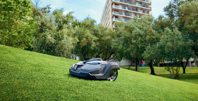 Husqvarna’s higher–end grass– munching bots can easily manage a fairly significant slope.