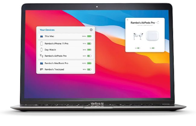 From Guilherme Rambo, v2.airbuddy.app Needs macOS 10.14.6 or later