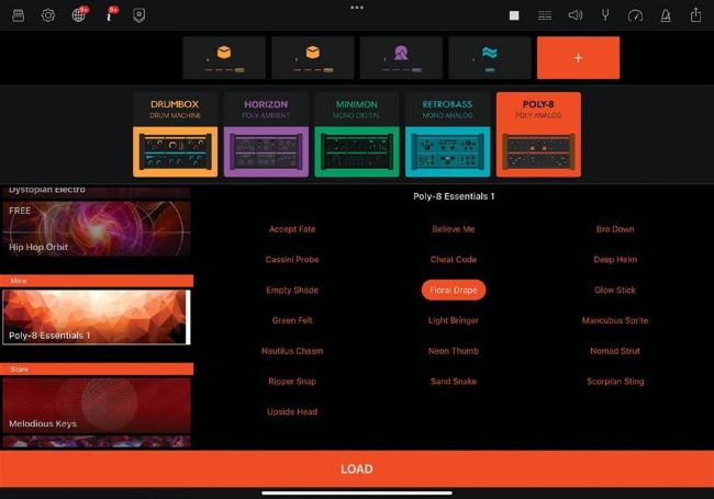 Although you can use Groovebox like any other electronic music workstation, what makes this particular app so good is its use of presets. Simply pick the instrument you want to use, find a preset you like and add it to your song. Choose another instrument, pick another preset and you’ve already got a tune. You can then create multiple song sections, each of which has its own selection of loops, and switch between them with a single tap as they play in tune and in time.