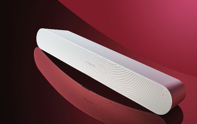 The Sonos Ray is available in both black and white colorways. The 22-inch width is compact for a Sonos soundbar and the tapered design gives it a unique flourish. A light at the front confirms your button presses, so you can see when the volume is being changed.