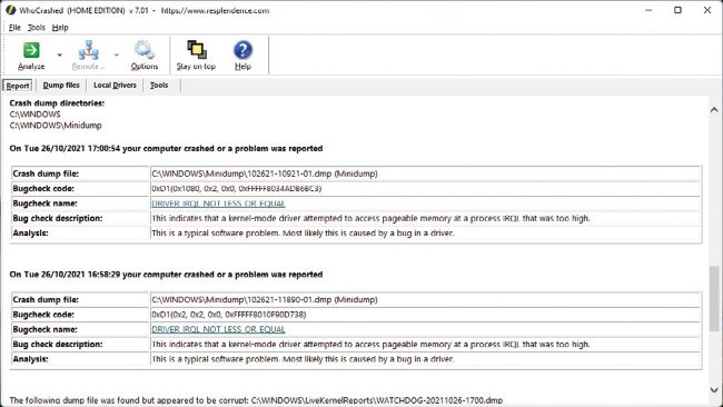Use WhoCrashed to help troubleshoot BSODs.