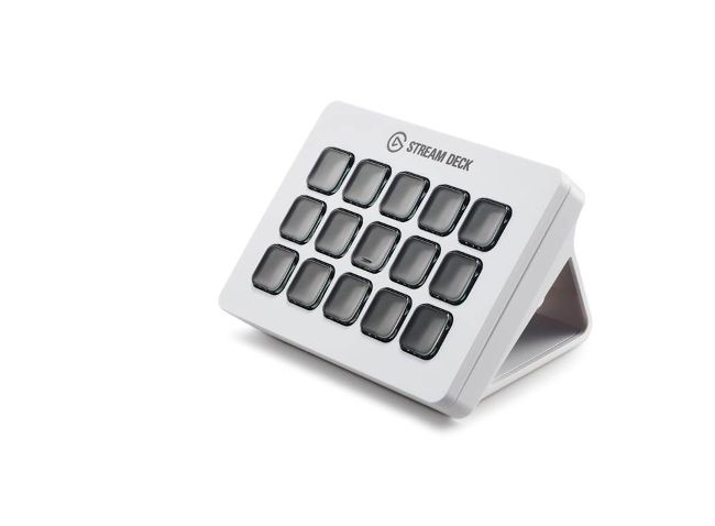 There are several variants in Elgato's Stream Deck lineup. There is the original model, the XL version, the Mini, the mobile app, and the pedal accessory. The one we have on test here, the MK.2, is a revamp of the original version. It now features 15 physical LCD macro keys and comes in a white variant. What it gives you over the original model is a nicer 45° detachable kickstand, interchangeable faceplates for more customization, and a removable USB-C cable.