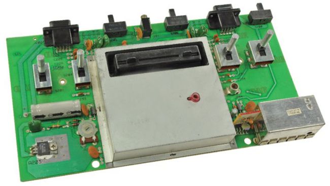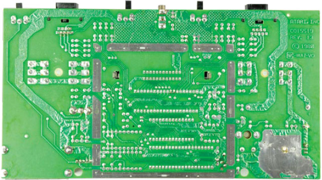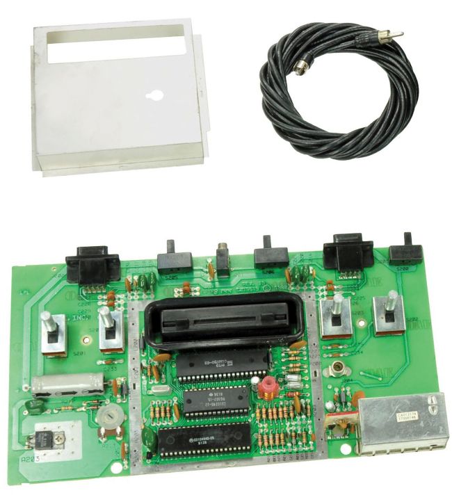 The motherboard of the 2600 is dominated by an ominous metal box, likely the EMI shield covering the ICs.