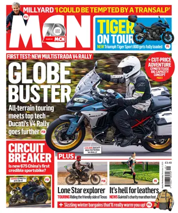 Discover the thrills of touring Texas's friendly roads, dive into the latest in motorcycle news with Guintoli's charity marathon, and explore sizzling winter bargains. Plus, test the cutting-edge Ducati Multistrada V4 Rally and CFMOTO's exciting new 675, as we uncover the future of biking.