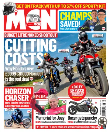 This issue of MCN packs a punch! Celebrate the legacy of Joey with a heartfelt memorial, dive into thrilling news from home, and discover the sleek new BMW R1300R. We guide you through fitting chains and sprockets, plus a showdown between the Honda CB1000 Hornet and competitors. Gear up for adventure with the updated Ténéré 700 and get insider insights into GP drama with Oxley.