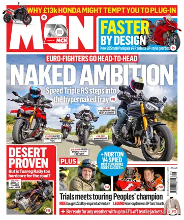 In this issue of MCN, the Triumph Speed Triple RS storms into the hypernaked scene, while Dougie showcases a thrilling Six Day-inspired adventure. Discover the emotional journey of Nicky Hayden as he captured GP fans' hearts and dive into head-to-head battles between Euro fighters. Plus, gear up for any weather with massive savings on textile jackets.