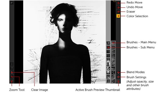 Deco Sketch has its heart in geometry. And since geometry exists in practically everything our eyes look at, the effects that Deco Sketch produce seem to work effortlessly with all kinds of photo styles, from architecture to portraits. You can either choose to work with a photo or begin from scratch by painting shapes.