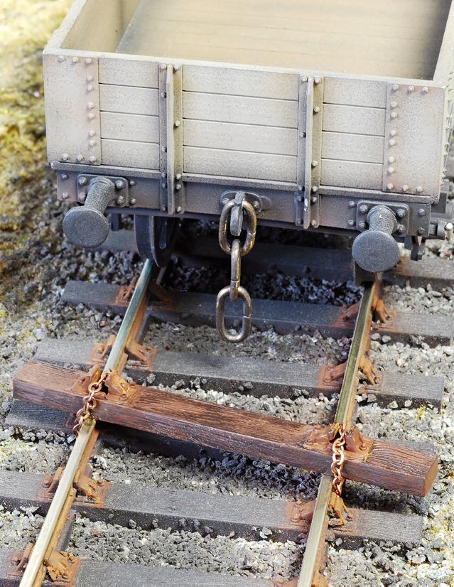 Truncated lines or rarely used sidings could often be seen with sleepers placed across the rails. They may be secured by chains or, if rail chairs are fitted, the sleeper would be upturned and secured to the rails with wooden wedges, or ‘keys’. Multiple sleepers could be bolted together to add greater height and this is a very simple feature to replicate, using sleepers recovered from track offcuts.