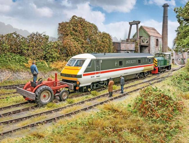 Interviews are under way to select a new colliery shunter. Pulled in by a tractor, the candidate, Driver Van-Trailer (possibly Dutch?), is turned out in smart stripy attire. When asked about his engine… “OK, I don’t have one, but I SO want to leave the shiny corporate world. I want to get my buffers dirty pushing wagons around. Look, I can use the green engine behind me, we’re good mates… please… please…”