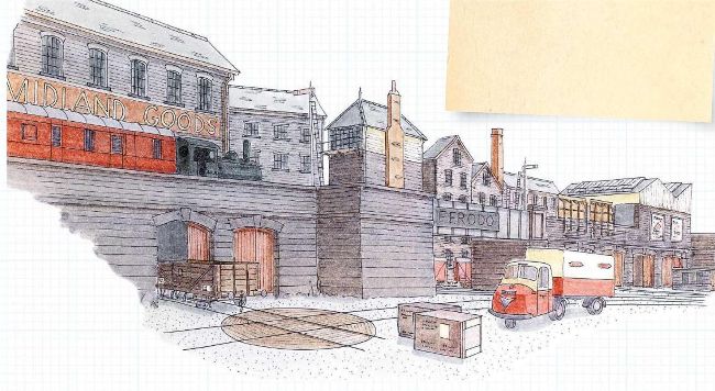This 3D concept, from my book Micro Layouts, encapsulates the idea of an intense shunting layout with low-level foreground yard and wagon turntable, a rear yard – glimpsed through the ‘Ferodo’ bridge – and upper level warehouse, extreme left. The whole lot is contained within a space of 4ft by 1ft 10in and shows what can be achieved in such a small space. Now, I don’t want to replicate this design here, but to show the concept of a double-height layout and a high-level diagonal spine, which can be transferred to the new designs that follow.